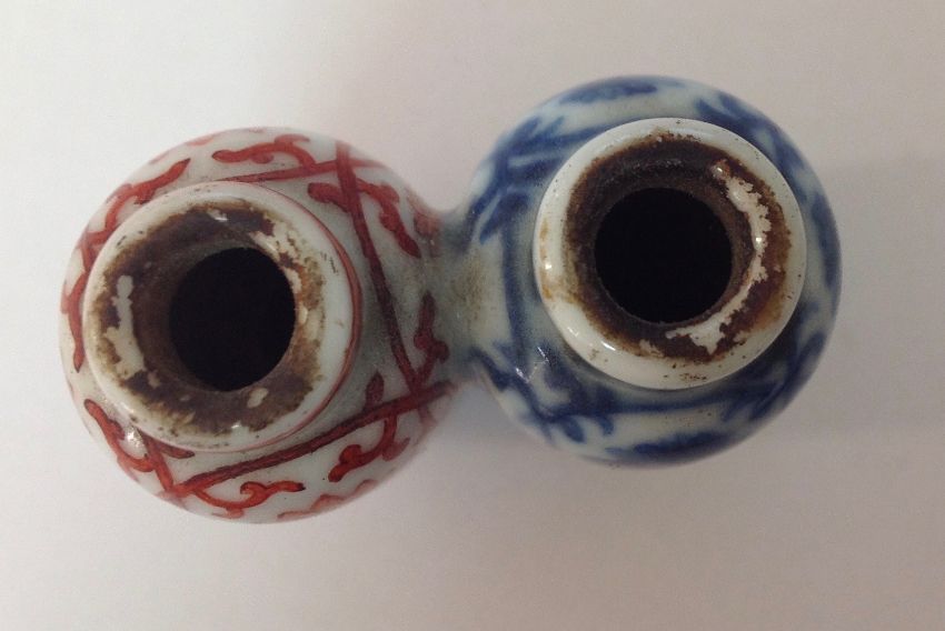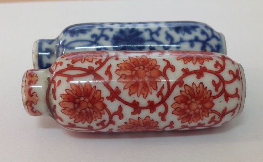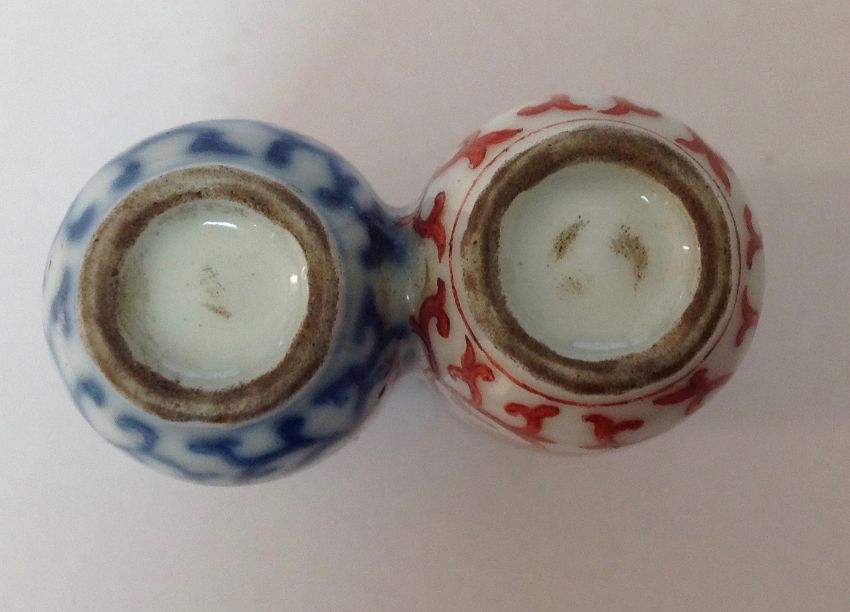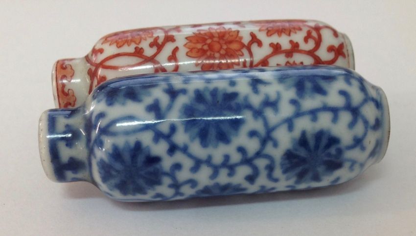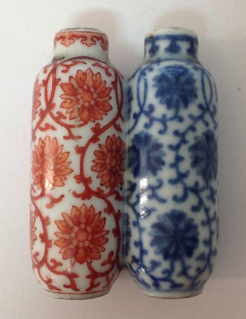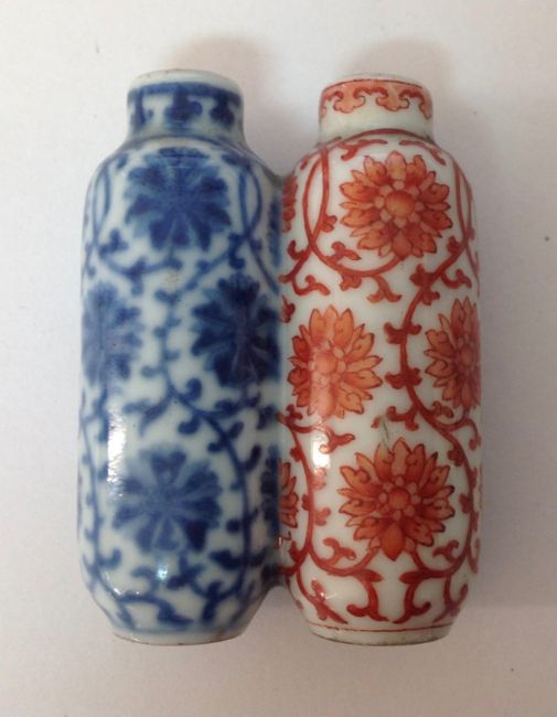A 19th century Chinese blue and white and iron red double porcelain snuff bottle