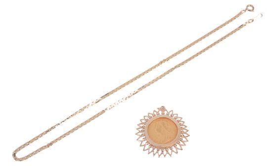 sovereign including mount approx. 13.2 gm., chain approx. 4.5 gm.