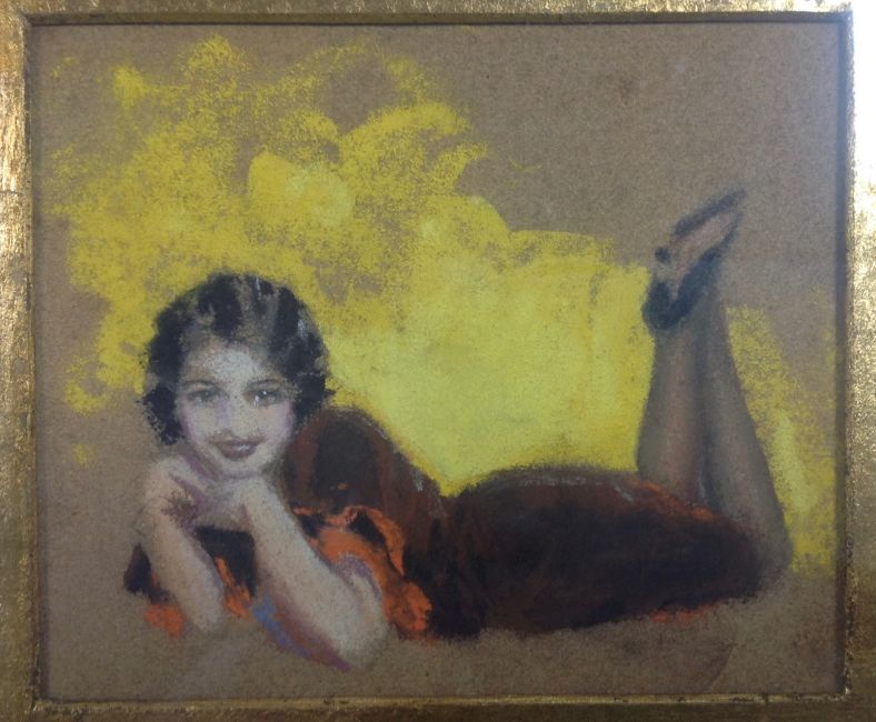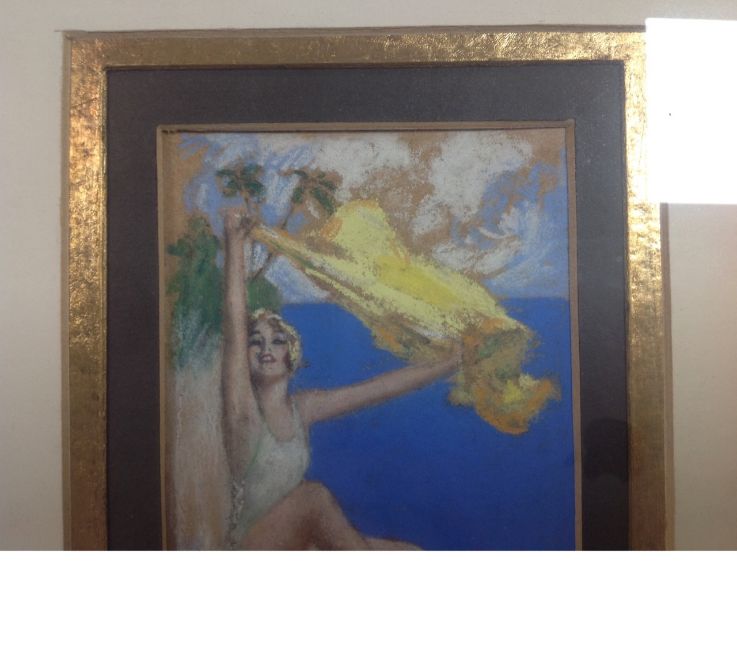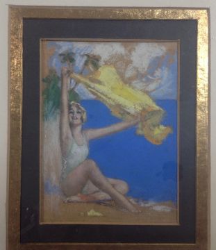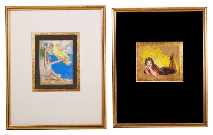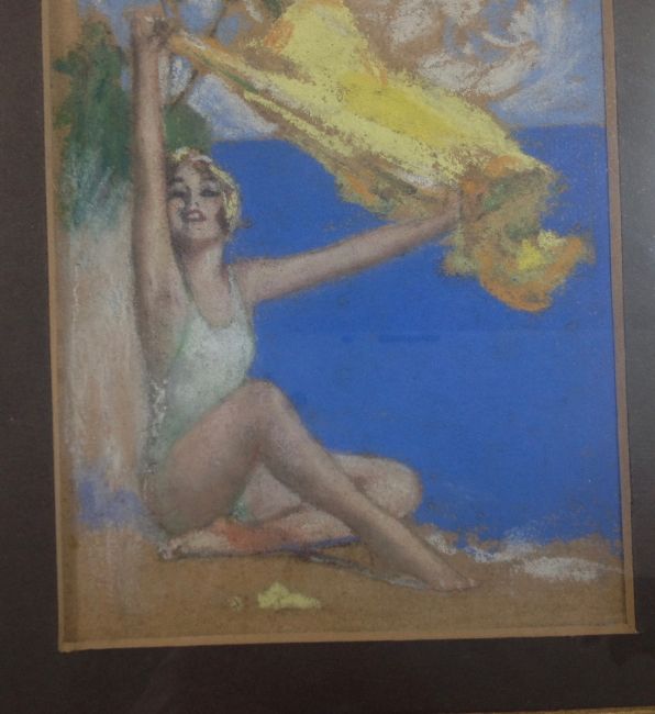 'Girl on the beach', pastel and 'Girl relaxing', pastel, both framed, unsigned, both with certificate of authenticity verso, (2)