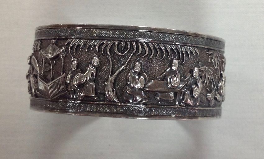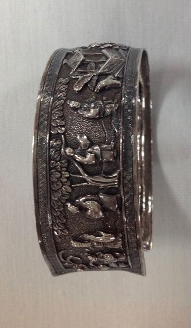 A Chinese export ware silver repousse bangle, late 19th century