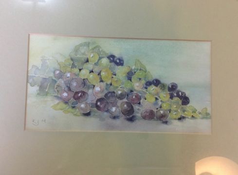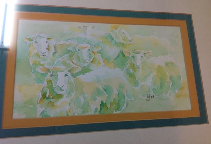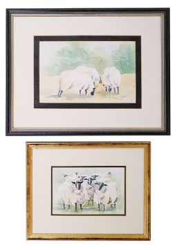 three of sheep, two of floral sprays and another of grapes, each initialled lower margin in pencil RJM, each framed, (6)