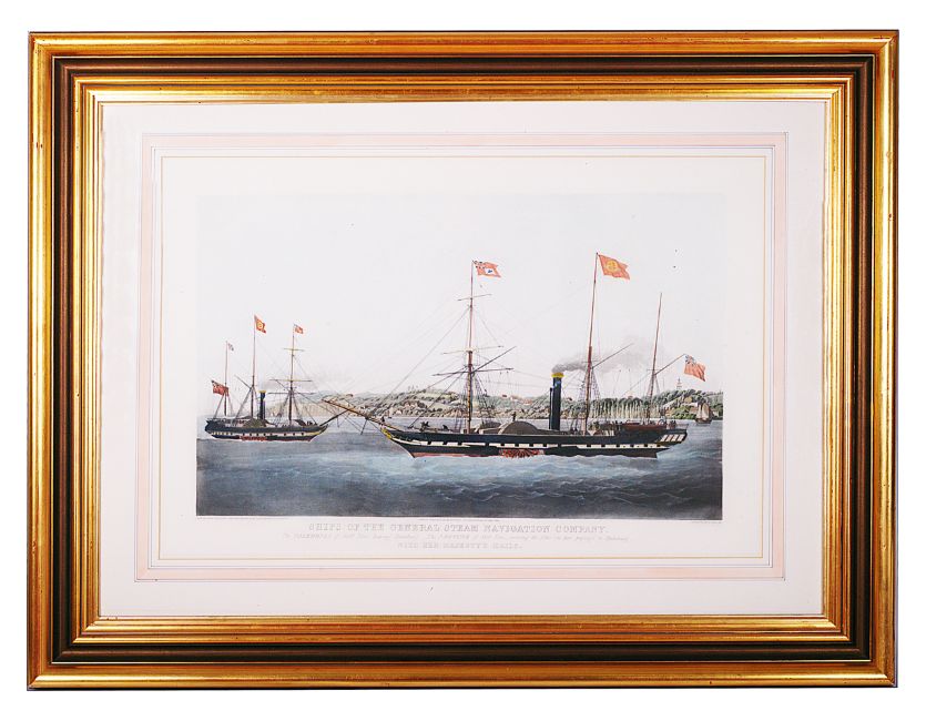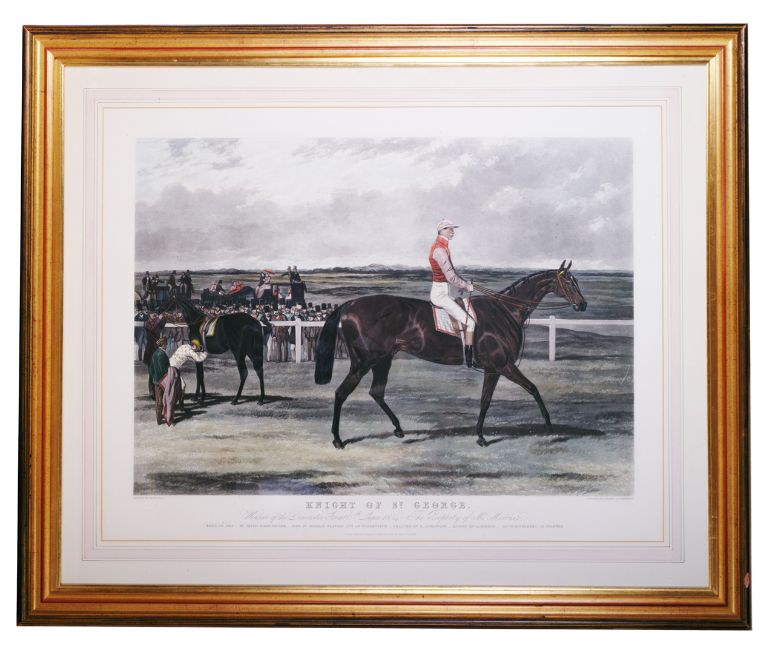 comprising 'Knight of St George' winner of the Doncaster Great St Ledger 1854, framed; 'Ships of the General Steam Navigation Company', framed and 'cows in landscape', framed, (3)