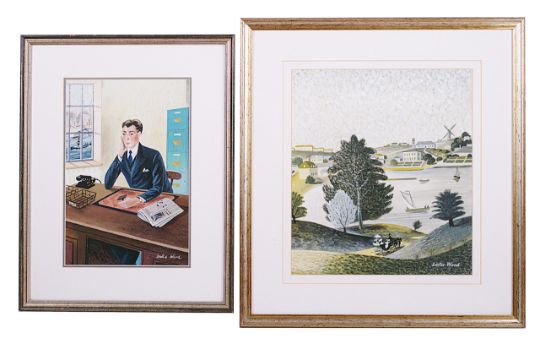 together with another Leslie Wood original artwork for a book dust wrapper, framed, (2)