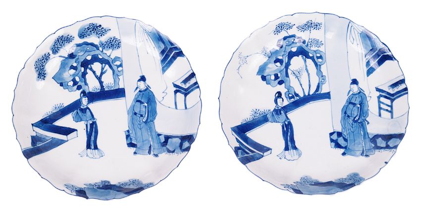 A pair of Chinese Kangxi blue and white porcelain dishes