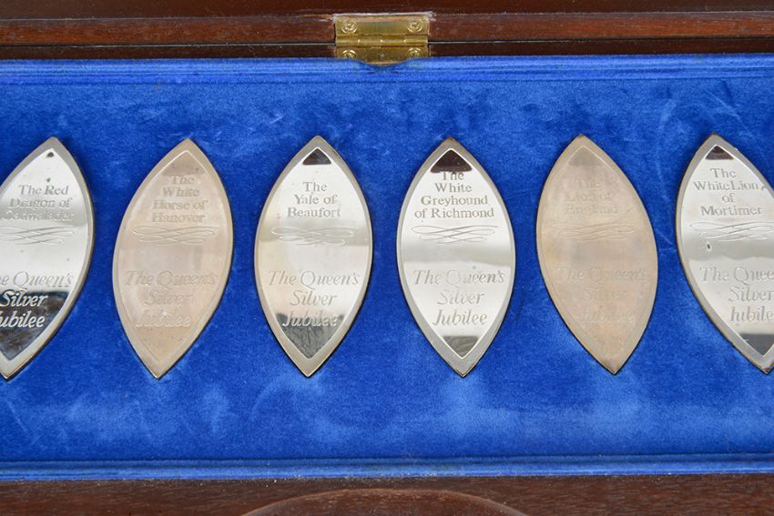 A cased set of ten The Queen's Beasts silver ingot commemorating the Queen's Silver Jubilee