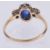 the oval sapphire of good colour and with small diamond set to either side, yellow metal mount tests for gold, associated red leather ring box