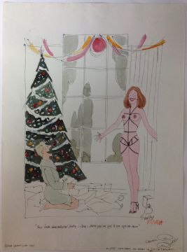 cartoon artwork for Playboy pub. Jan 1993 p.135, drawn: July 1992, pen and ink with watercolour, on Daler board, signed lower right, caption below, Copyright Playboy Publications All Rights Reserved & Not For Reproduction stamps upper margin, Smilby yellow dot verso, with dust sheet, together with artists rough workup for this artwork with artists notes in margins, signed lower right, (2)