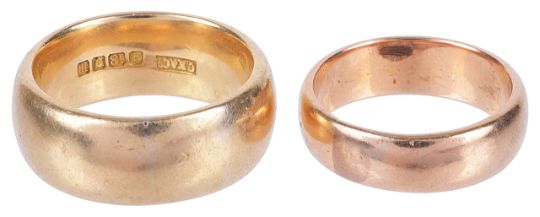 larger band approx. 10mm in width, size Q, approx. weight 18.7 gms., smaller band size O, approx. weight 7.2 gms.