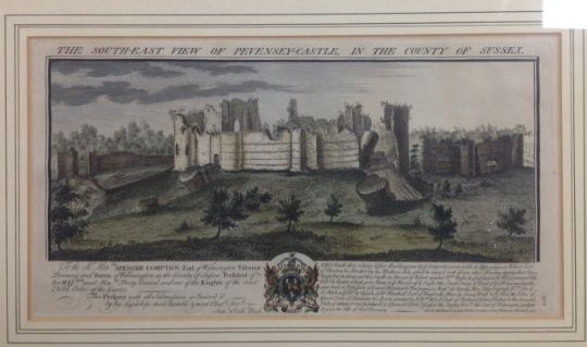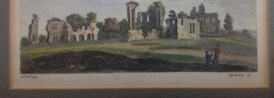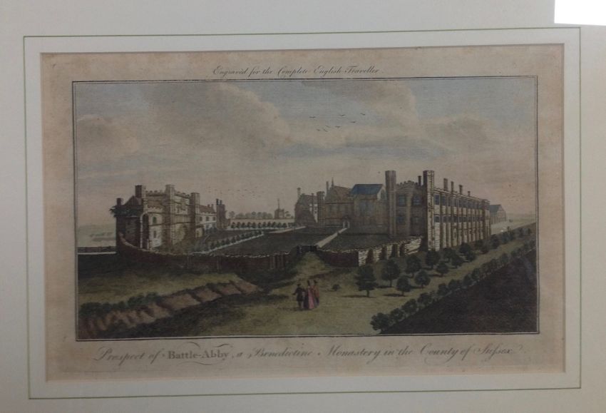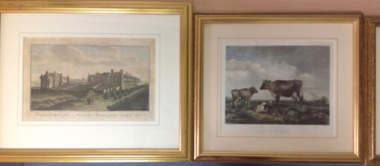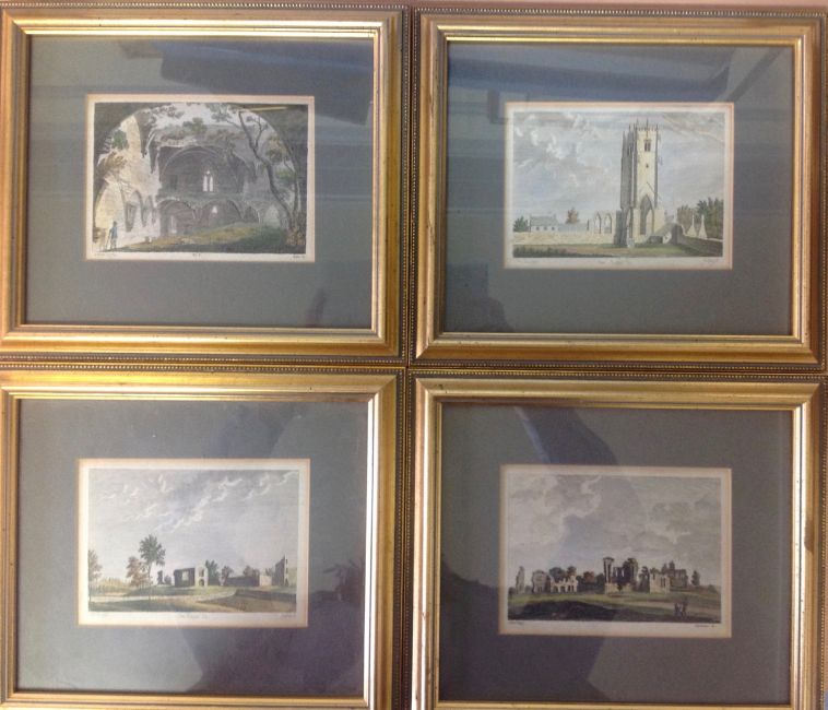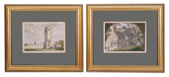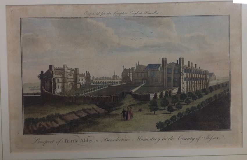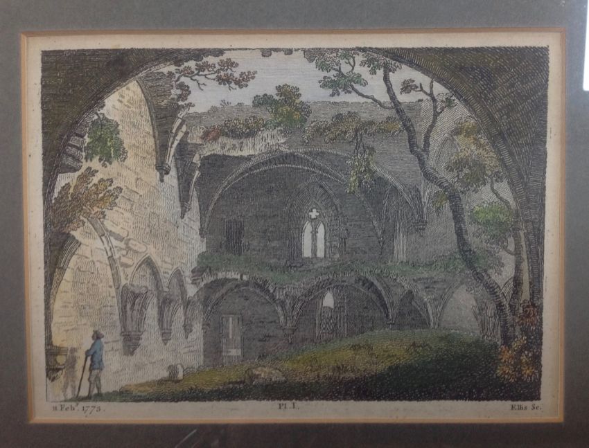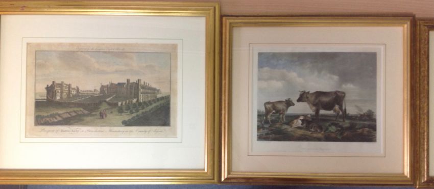 A collection of eleven prints of landscapes and castles in Yorkshire, Sussex and France, framed, (11)