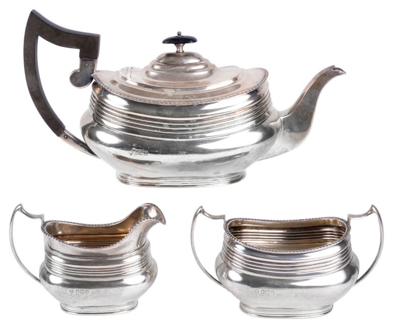An Edwardian three piece tea service, hallmarked Sheffield 1918