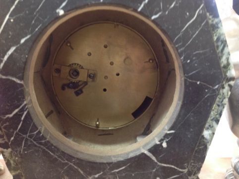 Condition: Fair with wear throughout, wear to chrome, damage to marble and agate, clock mechanism replaced NOT tested, no key