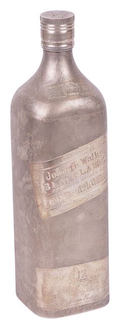 A novelty white metal decanter in the form of a Johnnie Walker Black Label Whisky bottle