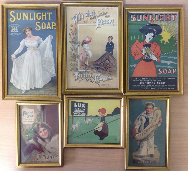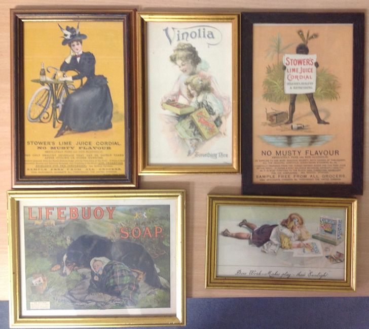 Advertising memorabilia for Sunlight Soap, United States Lines, Lifeboy Soap, Avalon cigarettes