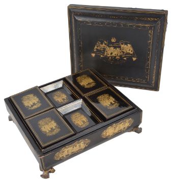 A late 19th century Chinese lacquer gaming box