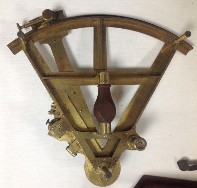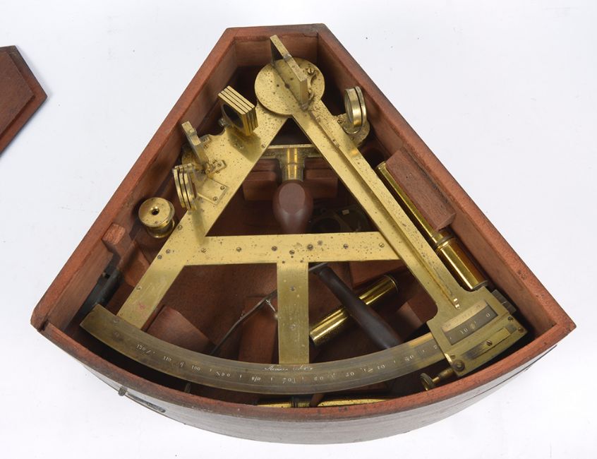 Condition: The sextant inset is a little tarnished and the box lid is detached but intact. In fair condition for the age. Please note this is numbered on the reverse number 1040.