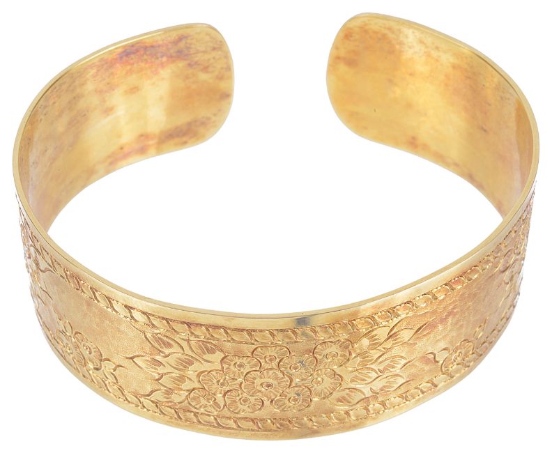 decorated with flower posies on a plannished ground and with engraved rope twist detail to edge, stamped to inside with initials R.S., tests for gold