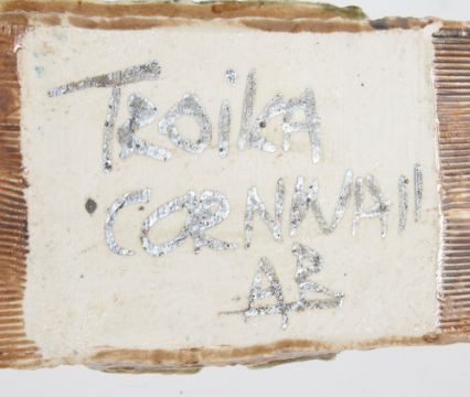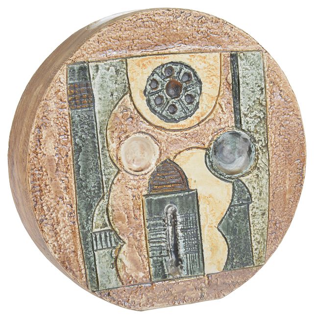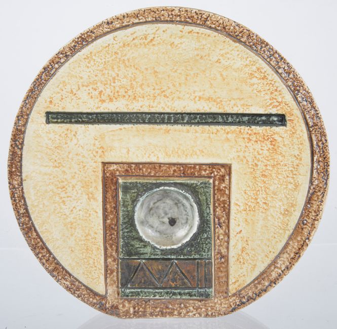 of circular form with abstract decoration, bears painted factory and artist marks to base