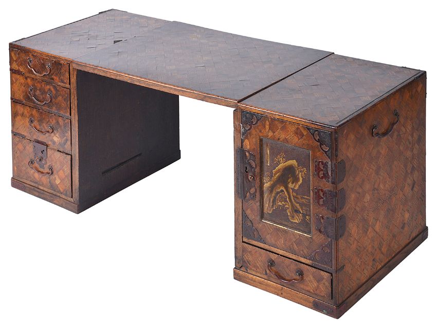 A late 19th century Japanese Hakone wear parquetry miniature desk or cabinet