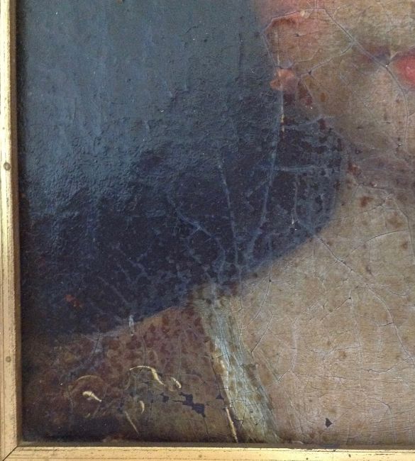 Condition: Fair, with wear to frame, oil on canvas crackled