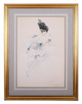 'Seated lady' coloured etching, signed in pencil and dated 1914, in gilt frame