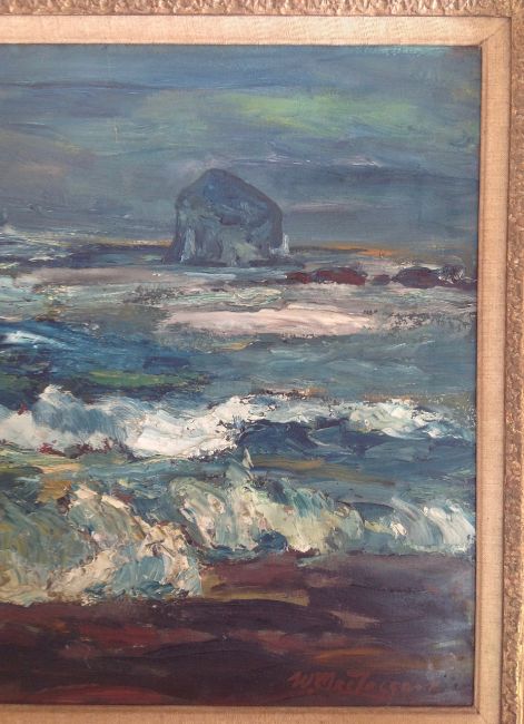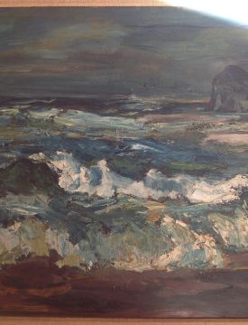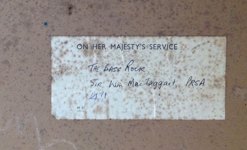 'The Bass Rock', signed bottom right, oil on board, with label verso reading 'On her Majesty's service The Bass Rock Wm MacTaggart PRSA'