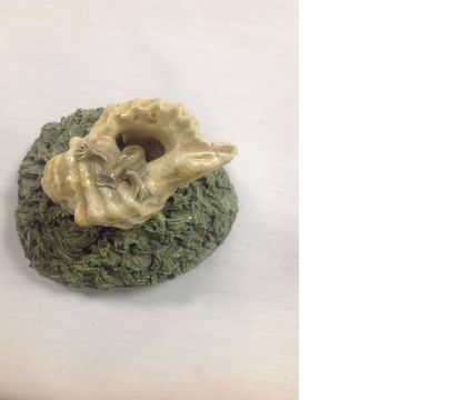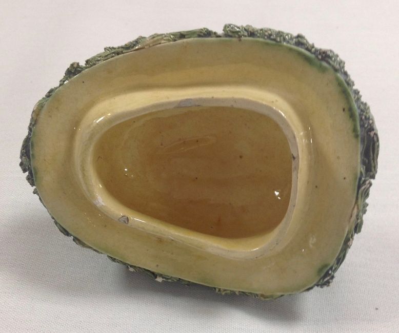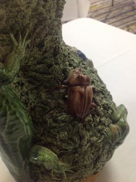 Condition: The shell on the lid has an insect crawling out although the head of the lizard is broken off. Two of the insects have legs missing, and there are some nibbles to insects.