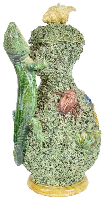 A 19th Century Palissy Majolica ewer decorated with insects