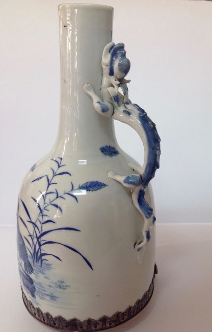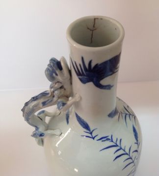 A 19th century Chinese blue and white porcelain dragon handled ewer