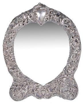 A Victorian heart shaped silver easel mirror, hallmarked London 1900