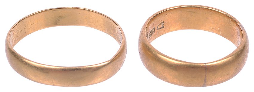 Two 22 carat gold wedding bands