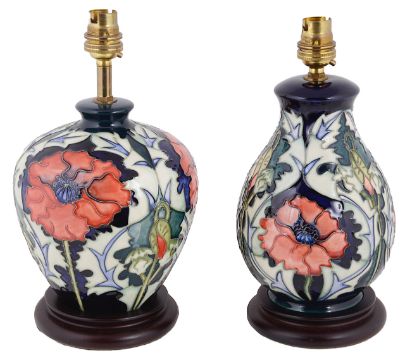 Two Moorcroft Rachel Bishop Poppy pattern table lamps, late 20th century