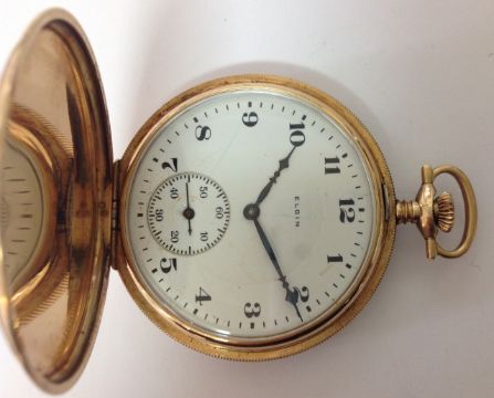 the engine turned case enclosing a white dial with arabic hours and spade hands, subsidiary seconds, movement named Elgin Natl Watch Co USA numbered 27163826.