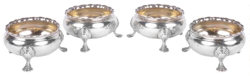 A set of Victorian four silver salts, hallmarked London 1868/1878