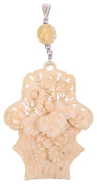 A Victorian/Edwardian carved ivory floral basket pendant