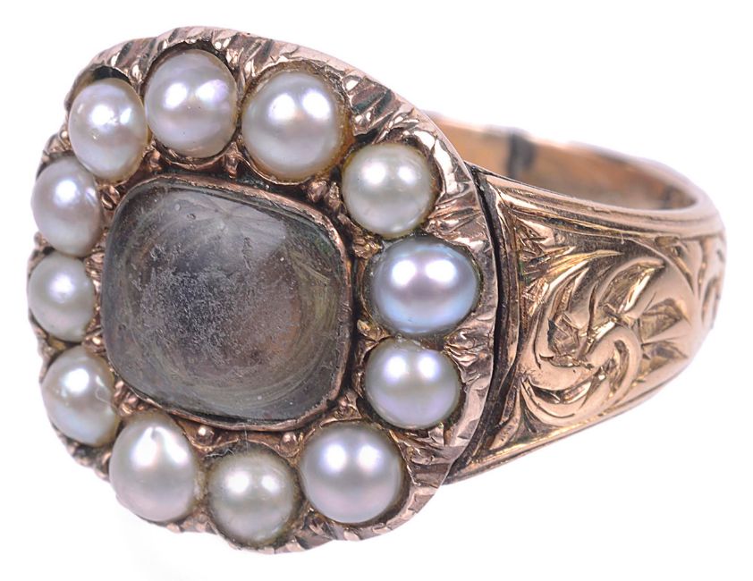 A Georgian pearl set memorial ring, dated 1816