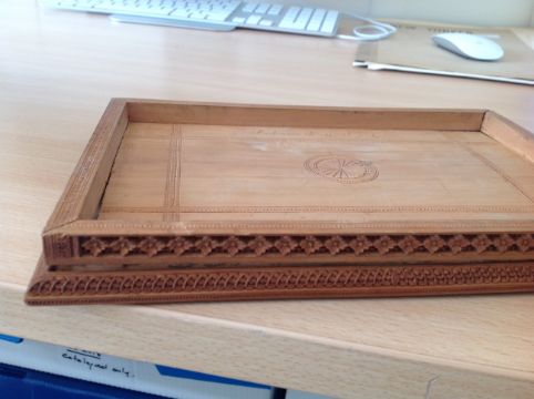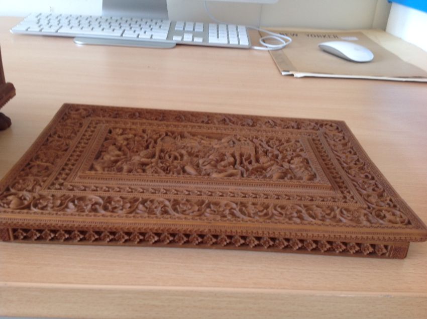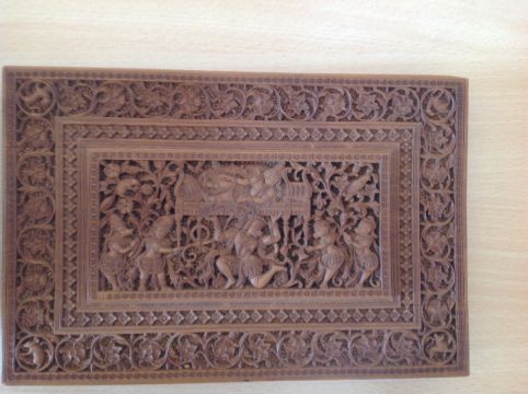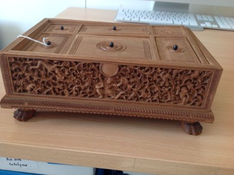 Condition: Overall good crisp carving and sandalwood scent. Upon recent examination it has come to our attention that the lid is lifting slightly but this is probably as a result of the staples lifting out - the lid needs some attention but is not broken and is in-tact.