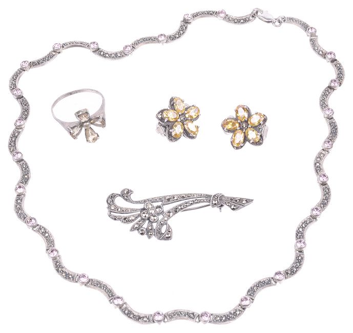 A small collection of silver marcasite and gem jewellery