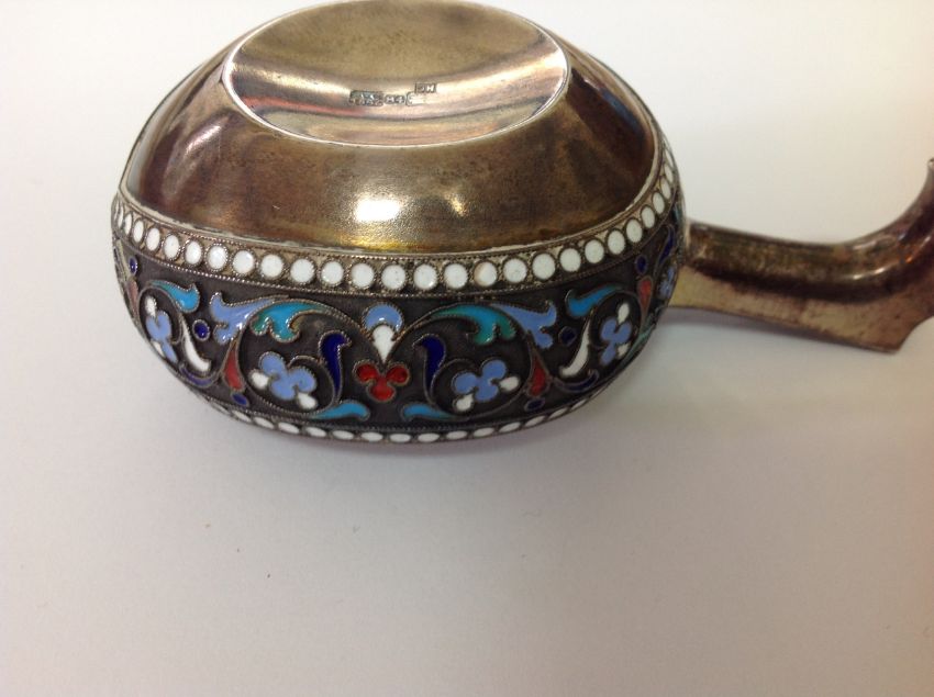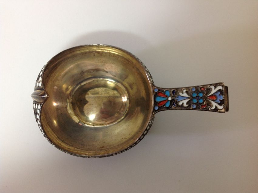 A Russian silver and enamel kovsh, hallmarked Moscow 1896 Aleksandr Vladislavoich Skovronsky