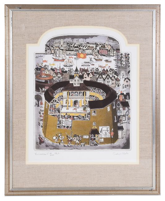 "The Wooden O", etching of The Globe Theatre, Southwark, limited edition 61 of 200, signed in pencil on the lower margin, framed.
