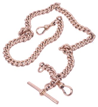 A delicate Edwardian 9ct rose gold watch Albert chain,