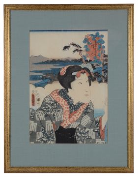 Toyokuni III, Utagawa Kunisada (1786-1864) A pair of Japanese woodblock prints of Kabuki actors, 'Actors at the 53 Stations of the Tokaido' (2)