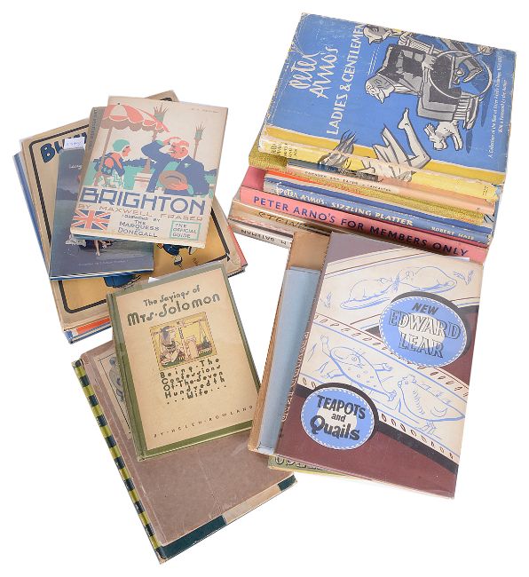 Condition: Overall mixed condition, most with some wear none in very good/mint condition. Majority fair-good condition. Some with staining . All hard back. HM Bateman - Considered Trifles; Saul Steinberg - The Art of Living; Peter Arno's - For Members Only; Chas Addams - Black Market; Facades and Facts - Osbert Lancaster; Peter Amos - Sizzling Platter; Peter Amos - Ladies & Gentlemen; Peter Amos - Man In The Shower; Chas Grave - Bluejackets and Others; William Steig - Dreams of Glory; Maxwell Fraser - Brighton; S.C.H. Davis - Motor Racing in Lighter Vein; S. Evelyn Thomas - Laughs with the Lovelies; Jack Dinsmore - Hot Dog Annual; Helen Rowland - The Sayings of Mrs Solomon; William Steig - All Embarrassed; William Steig - Small Fry; Osbert Lancaster - The Saracen's Head; Nicolas Bentley - Die? I Thought I'd Laugh; Edward Lear - Teapots and Quails; Dictionary of Rhyming Slang and R.A.F Slang