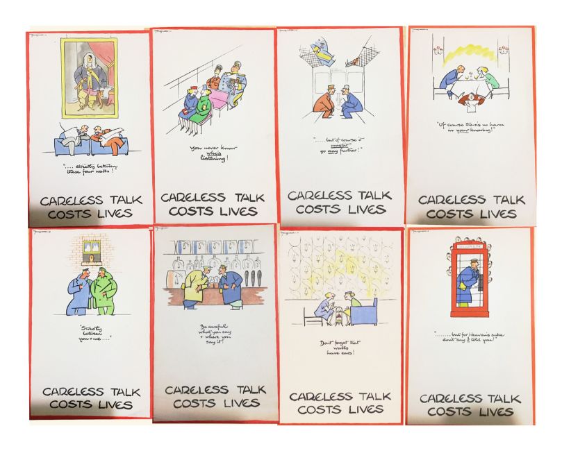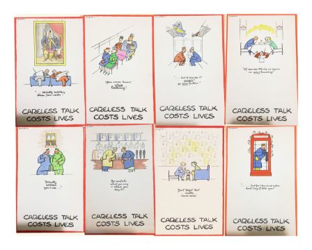 a full set of eight original WWII 'Careless Talk Costs Lives' lithographs in colours, circa 1943
