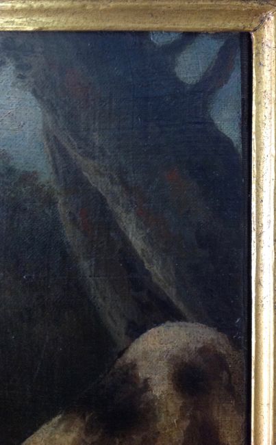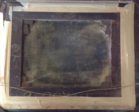 Condition: Re-lined, possibly cut down. Damage to the frame, wear to canvas, crackling to oil on front.