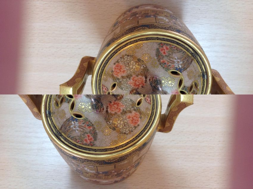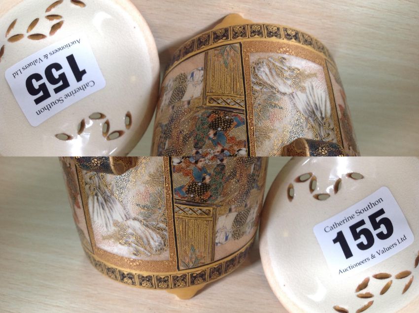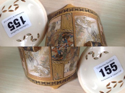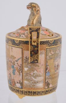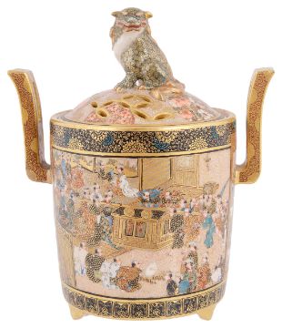 A fine Satsuma twin handled censer and cover by Kinkozan, Meiji period