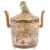 Condition: The lid with restored chip measuring approximately 1.8cm in length. The temple dog finial with minimal wear to nose as it has been lifted. Tiny nibble to the base. Recent closer inspection has identified that a small section of the base of one of the handle looks to have a slightly diffrent colour gilt suggesting a possible repair to the base of one handle (22/2/18)