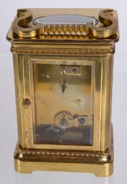 A Mappin & Webb London brass four glass carriage clock, late 19th/early 20th century