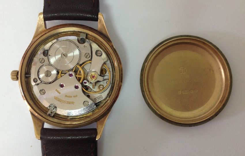 A 9ct gold Jaeger Le Coultre gentlemans wristwatch