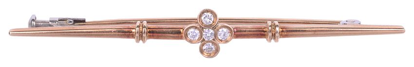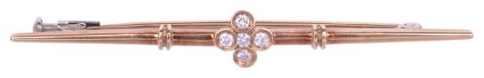 A delicate Continental .585 gold and diamond bar brooch