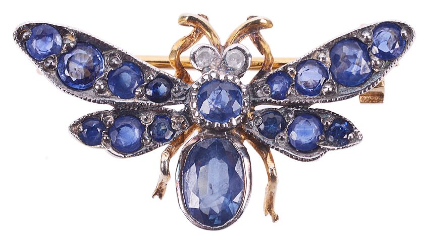 A charming Edwardian style blue sapphire and diamond bee brooch
